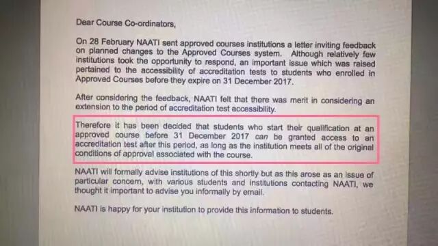 好消息!NAATI内部考试报名将延期到12月底!内部邮件流出!