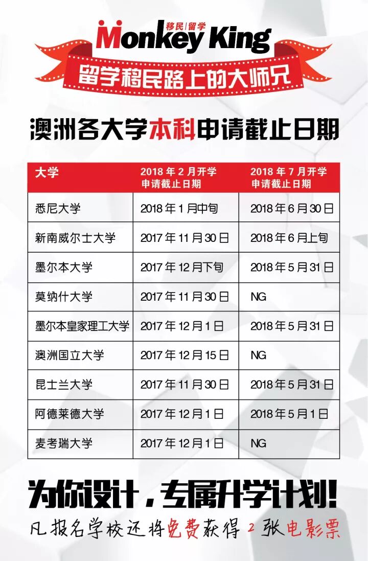其余所有SEMESTER 2, 2018 的undergraduate(本科)和 postgraduate(硕士)专业申请全部还在开放中,具体截止日期等待进一步的官方消息。