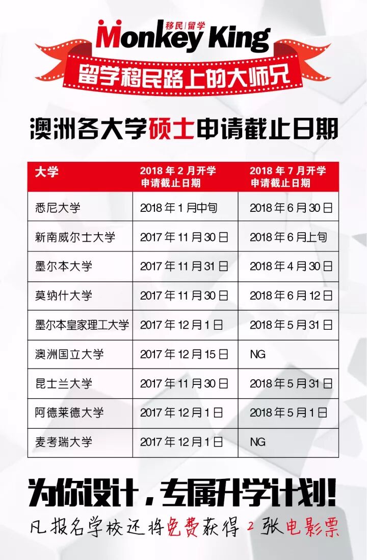 截止日期为2018年2月7日!如果有任何想要申请这两个专业的同学,请务必尽快提交自己的相关材料给Monkeyking留学团队以获取条件Offer,成绩优异的同学甚可以直接获得Full Offer!