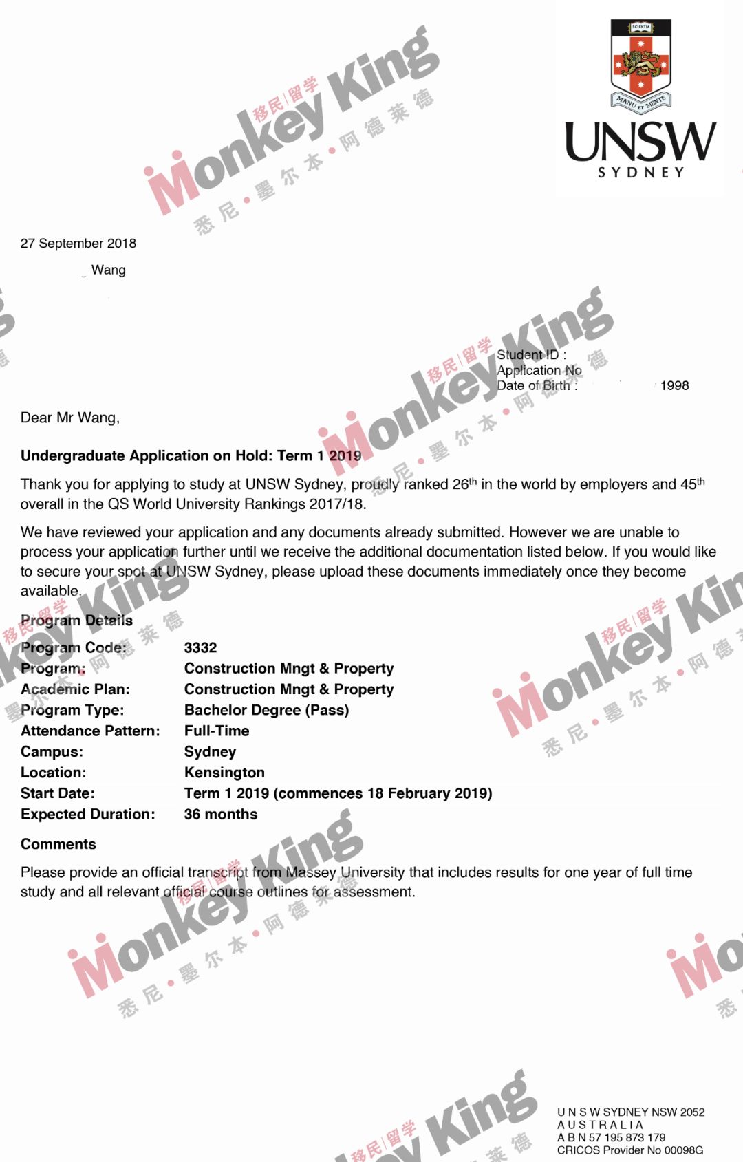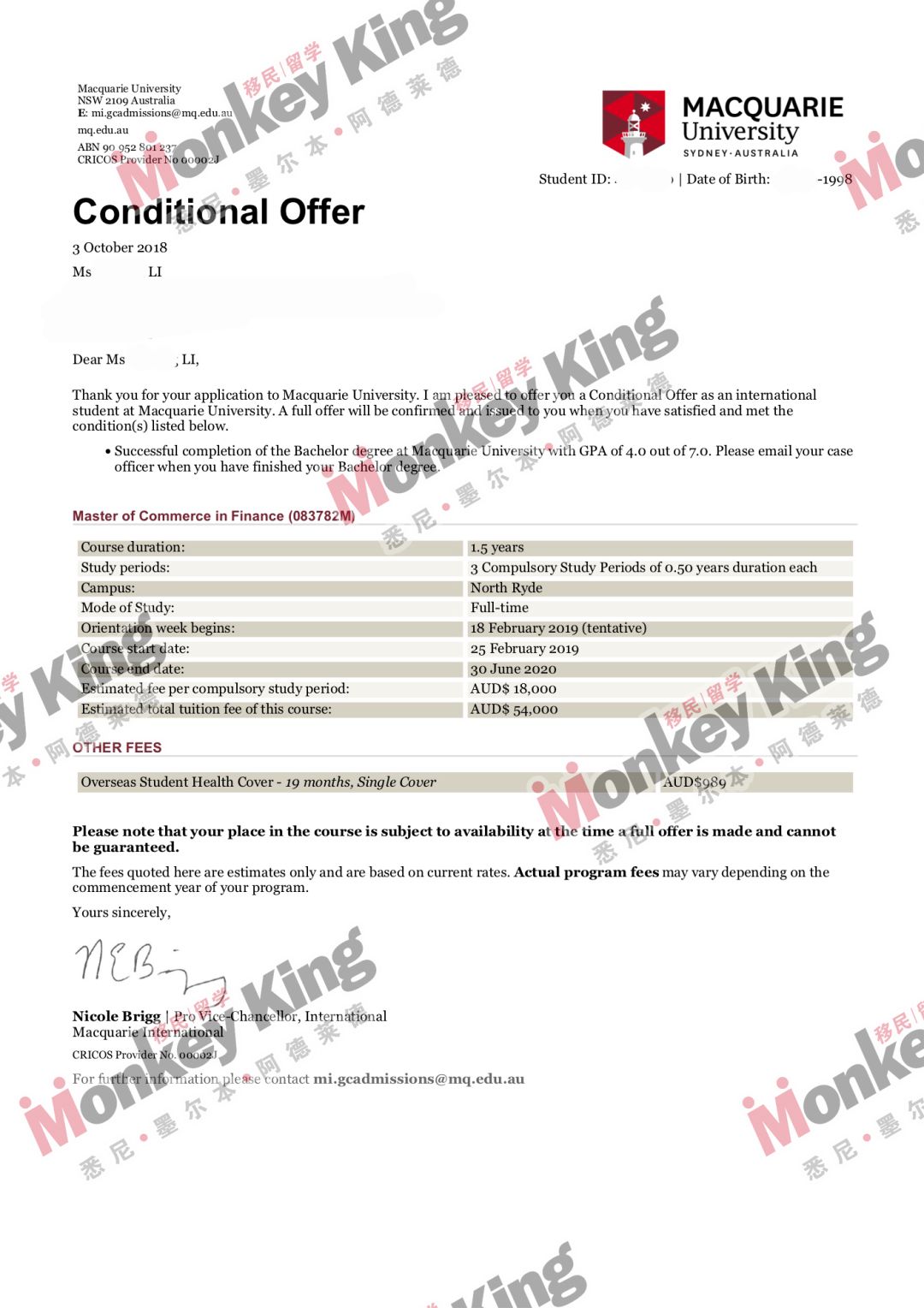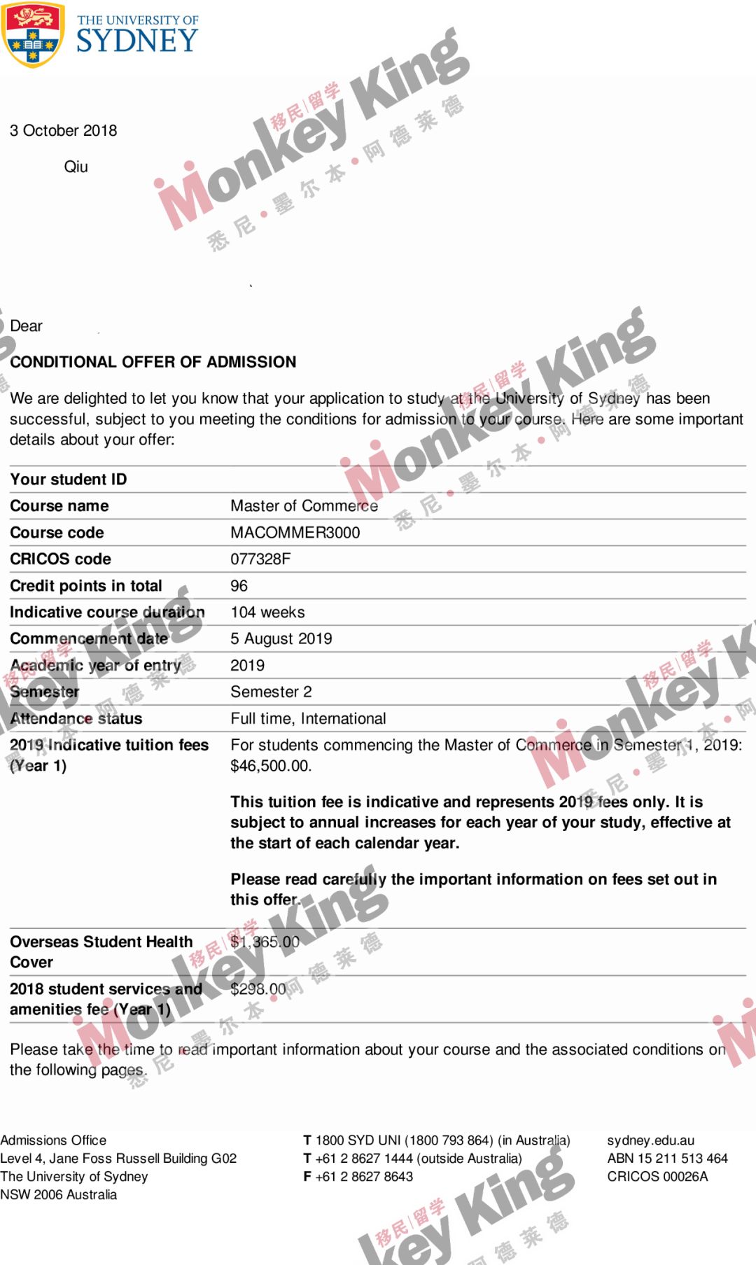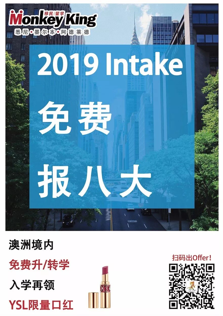 又到了每周Monkeyking移民留学澳洲名校offer专场时间。2019年入学的小伙伴们收到自己的 dream school 的 offer了吗?如果还没有也不用着急,赶快联系Monkeyking移民留学的顾问们,offer拿到你手软!