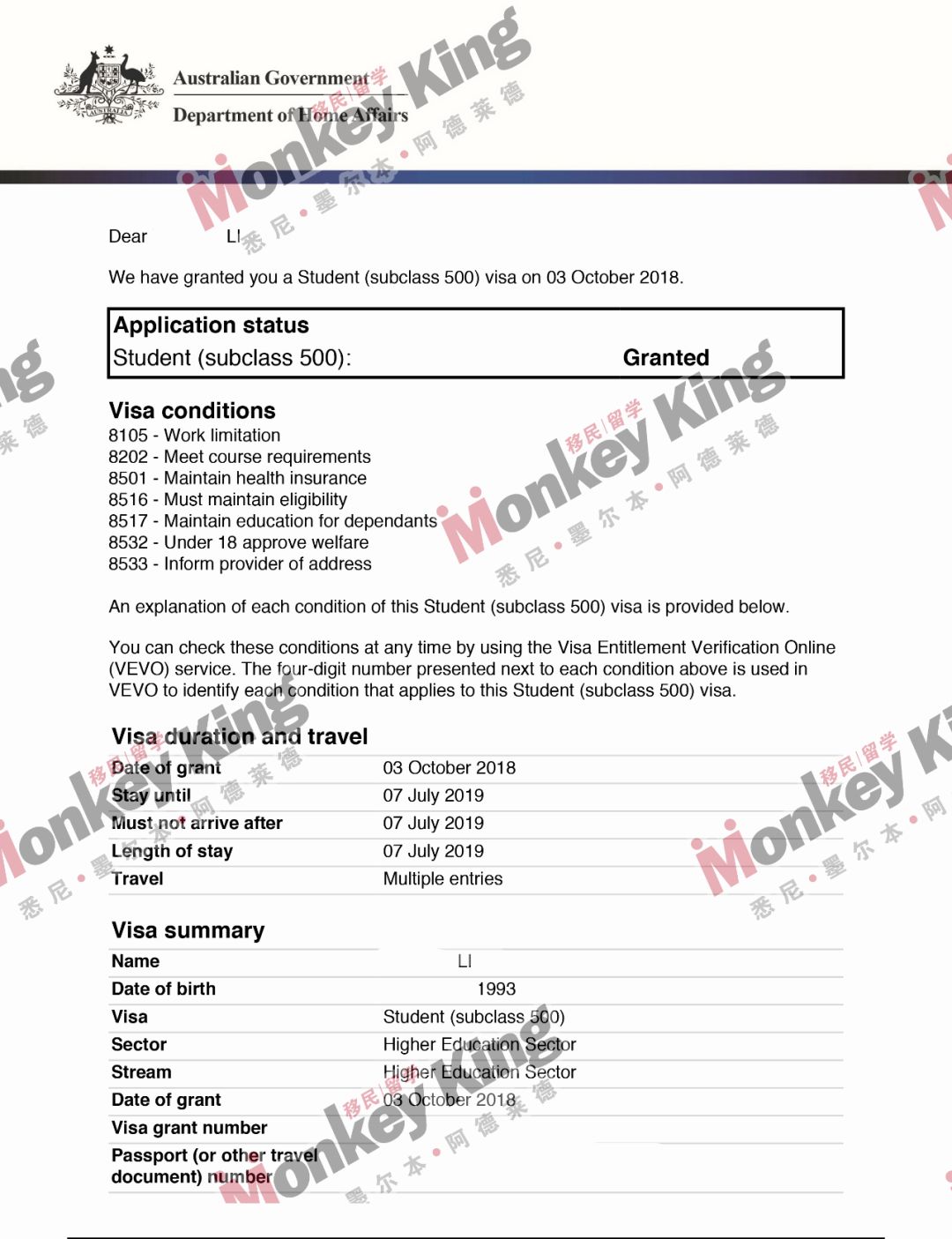 看到这些澳洲名校的offer是不是特别羡慕呢?心动不如行动,抓紧时间联系 Monkeyking 移民留学的专业顾问,下一个收到澳洲名校offer的就是你!Monkeyking 移民留学除了帮同学们获得澳洲名校 offer 之外,更在签证申请道路上为同学们保驾护航!