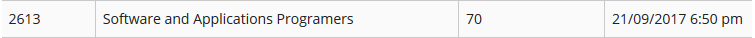 ➢2613 计算机 Software and Applications Programmers:1月3号的邀请官报显示,Software 推进到2017年9月21日的70分;出现倒行!