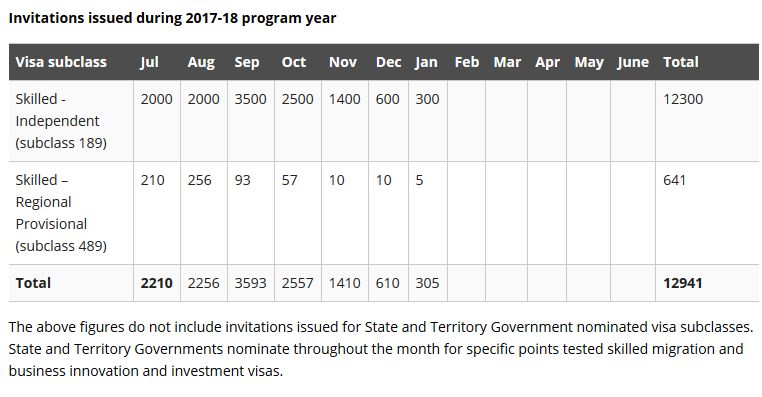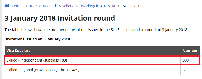 而且从移民局刚刚发布的1月03日EOI的官方数据显示,最近两次邀请名额技术移民均只有300个名额!