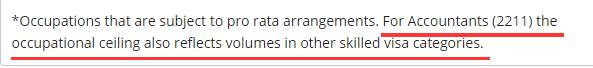 在本轮occupational ceiling表格中,出现了一句话:4785个会计中还包括了其他技术移民签证中的会计配额!