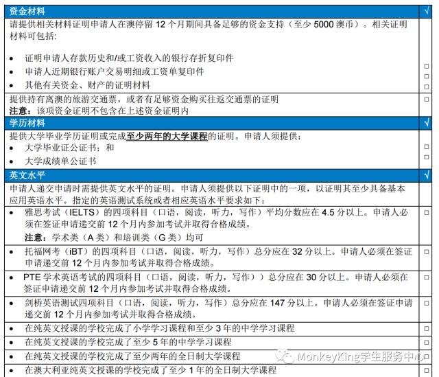 - 提供持有往返澳洲的机票,或者有足够资金购买往返机票的证明