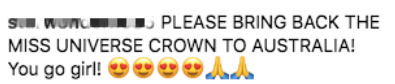 请把环球小姐的皇冠带回澳大利亚!冲啊!!!