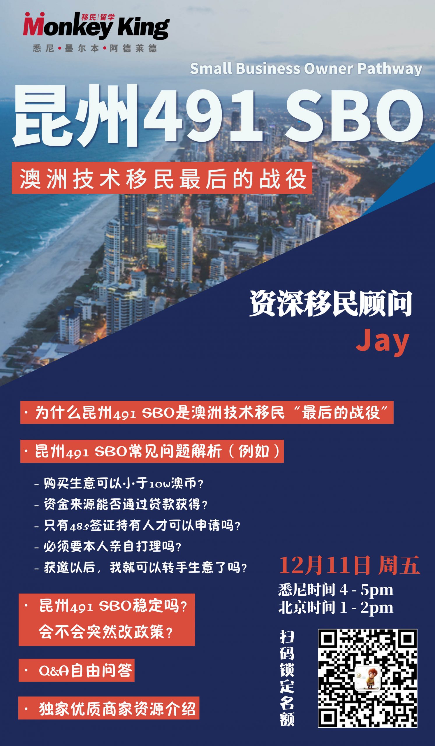 而针对大家目前最关心的昆州491 小生意,本周澳洲移民代理协会MIA和昆州政府项目负责人联合举办线上讲座。昆州项目负责人指出: