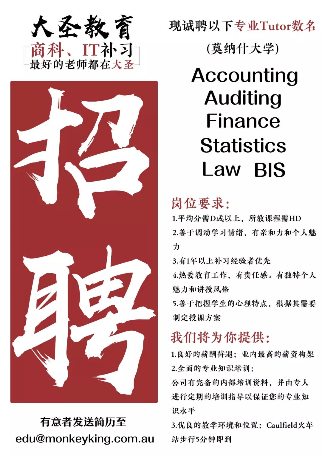 Monash 商科、IT各专业补习教师数名 (时薪 up to $300/h)
