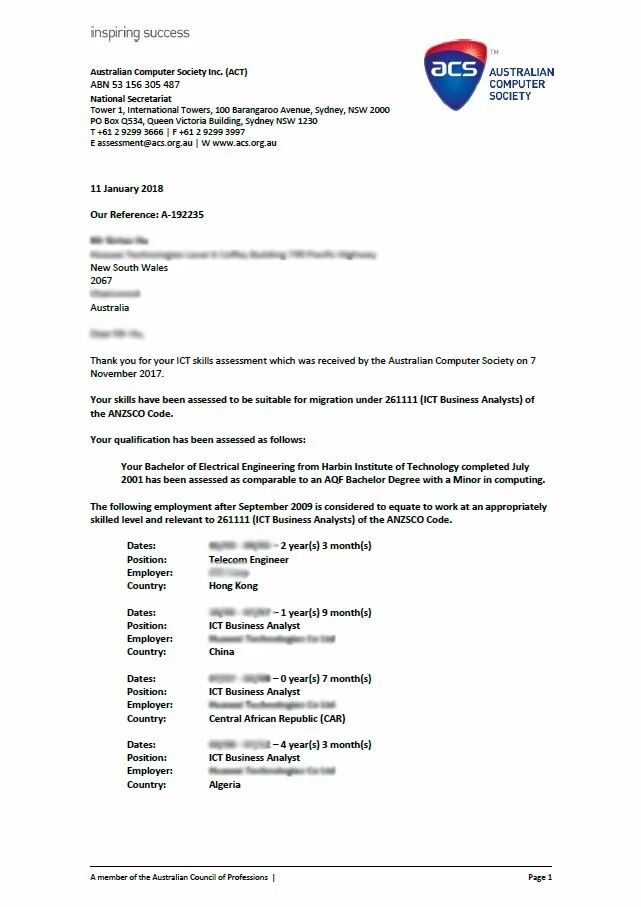 对于澳大利亚国家之外的IT学历,如果想要做出IT方向提名的职业评估,澳大利亚ICT部门授权的职业评估机构ACS,不仅仅需要对申请人的学位及成绩单进行认证,同时还要求申请人具备与提名职业高度相关的2年工作经验,才可以通过该提名职业的全评估。