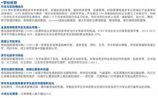 - 独特的“理论与实践相结合”的课程设置,全澳高等教育就业率第一;酒店和旅游管理专业全澳学科领先位置。
