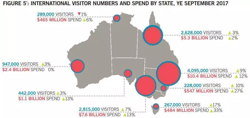 2016年来澳旅游人数加速增长后,澳洲旅游业的发展异常迅速,已经远远超过全球其他“竞争对手”。事实上,来澳旅游的国际游客增长速度已经是去全球其他国家旅游的3倍。