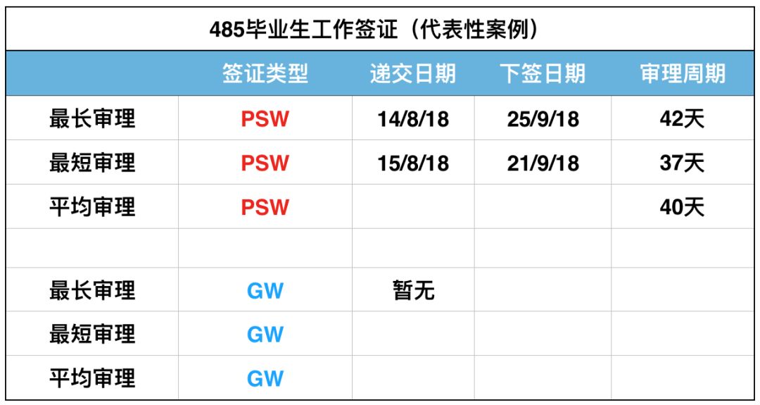 对于500学生签证,485毕业生工作签证,600旅游签证及820/801配偶签证,表格中为大家选出具有代表性的常规案例来统计当前审理进度。如若有部分申请人尚未在表中列出的最长审理时间拿到签证,也无需惊慌,在众多申请案例中也属正常。