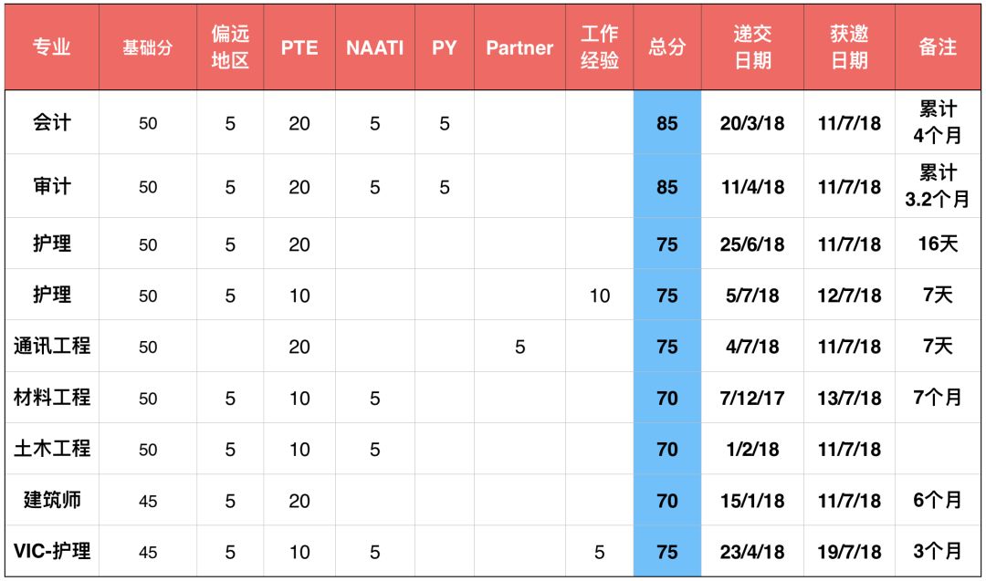 新财年EOI 7月到目前为止的邀请,值得期待的是非热门专业70分开始受邀。热门专业仍维持在高分段,75-85分。如果在接下来的几轮邀请可以继续维持当前这样的邀请势态,其他非热门专业有望回归至65分。另外,非热门专业的邀请发放可以体现出移民局的邀请姿态,暗示新一轮的邀请人数预计超过300人次。