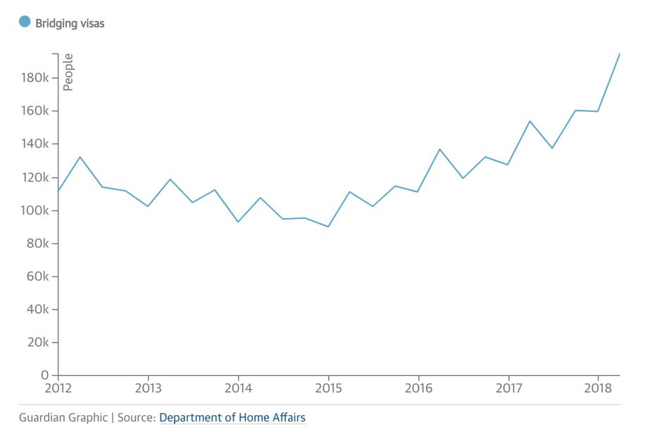 但澳洲国立大学人口统计学专家Liz Allen及工党影子移民部长Shayne Neumann对此解释表示质疑。今年3月31号政府官方数据表示,澳大利亚目前有194,875人持有过桥签证,与去年同一日期相比多出41,066人次。