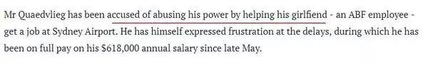 甚至还利用关系,帮自己的女伴在悉尼机场找了个高薪职位。