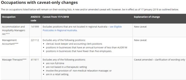 – 本次更新清单暂不适用于187 (DE)申请,2018年3月3日清单还会更新。目前ANZSCO清单上所有Level 1到3的职业 (Minister of Religion 272211除外)都可以用于187 (DE)申请。
