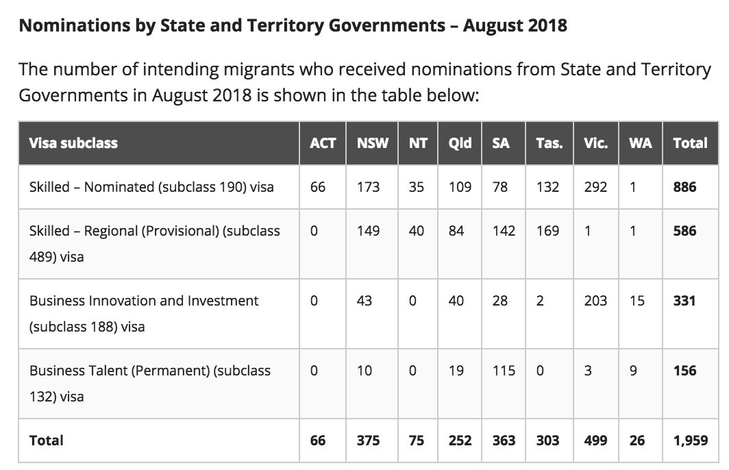 根据澳大利亚未来人口计划分析,未来偏远地区州担保将迎来下一次的移民高峰。如下表所示,单8月的190和489的邀请中,TAS的190邀请人数132人,489的邀请人数为169人,而ACT的190邀请仅66人。SA的190邀请人数78人,489的邀请人数为142人,与TAS相比略少一些。不过从TAS和SA的190和489邀请情况俩看,各州都偏向于给申请者489签证邀请。