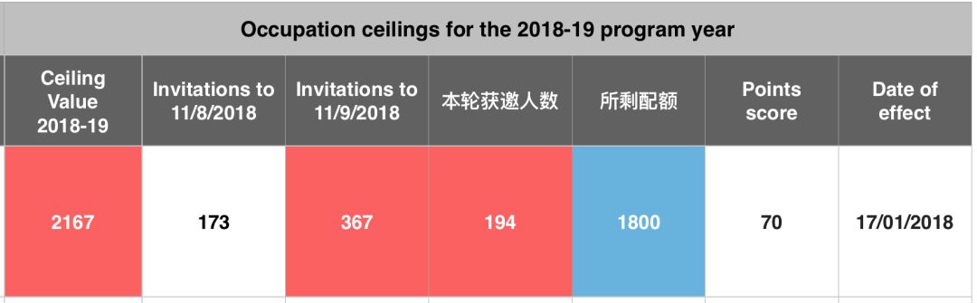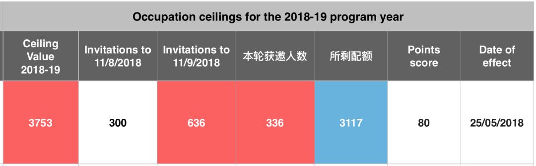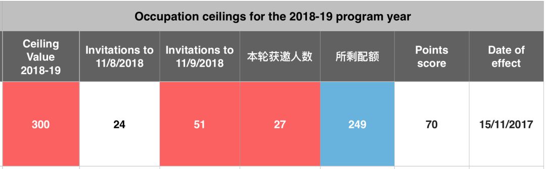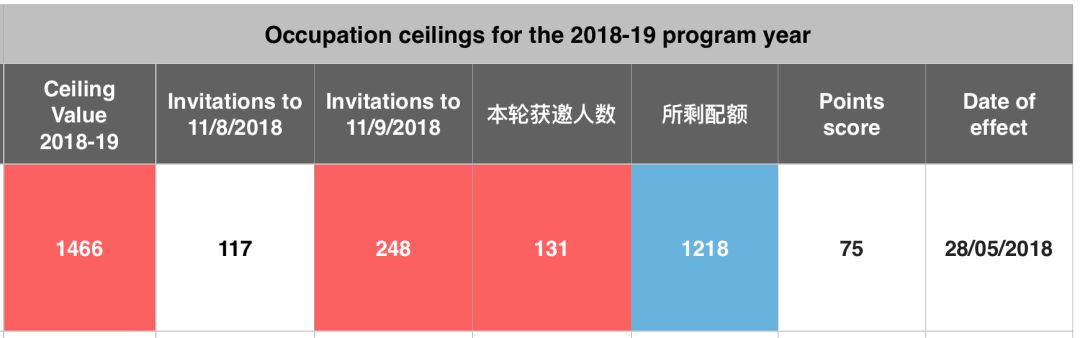 其他热门专业的邀请数据如下表所示,其中包括化学工程,土木工程,电气工程,通讯工程,护士,幼教,社工等。对于多数非热门专业邀请分数已经回归至70分,按照目前的邀请进度来看,移民局有望在今年按照预期配额邀请。
