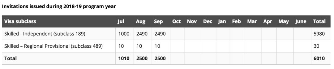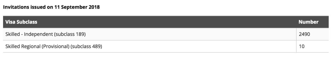 10月2日,移民局更新了2018年9月11号EOI官方数据。在本轮邀请中,189独立技术移民邀请了2490个名额;489 Family Stream 偏远地区担保移民邀请了个10个名额。