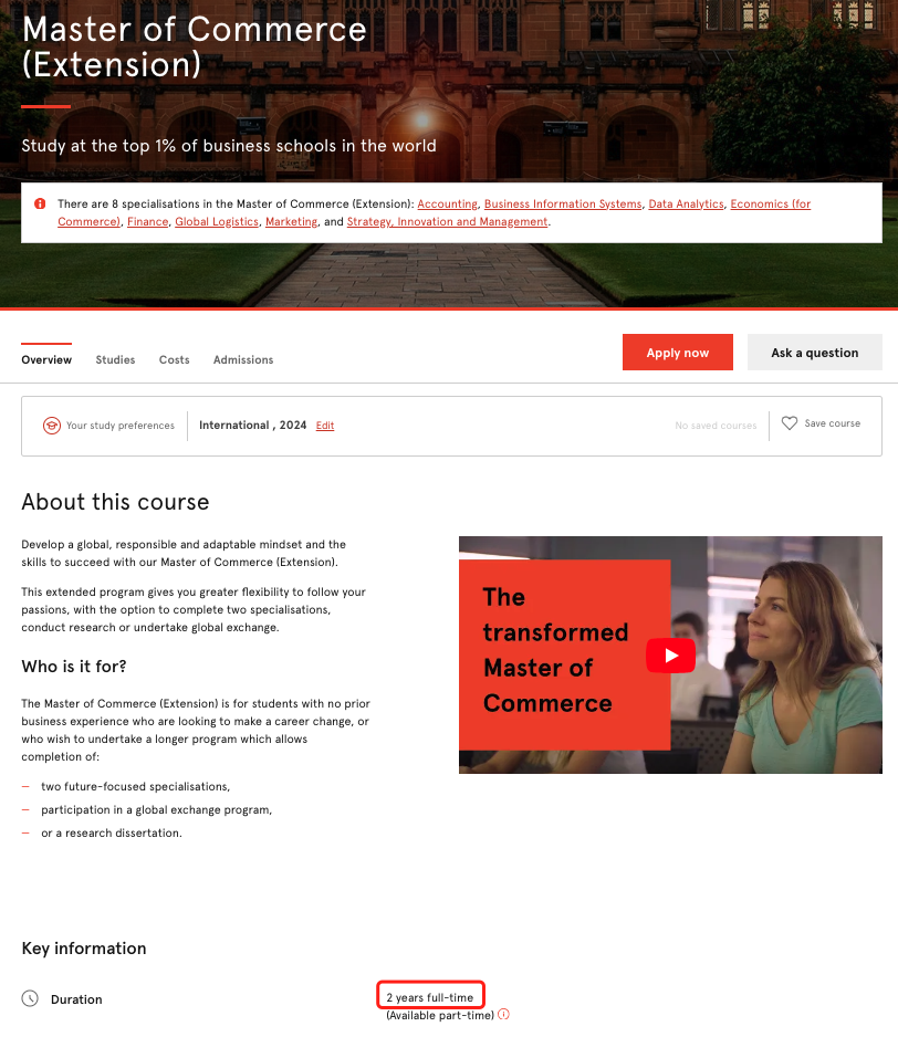 需要同时满足在CRICOS注册的时间为92周或以上,