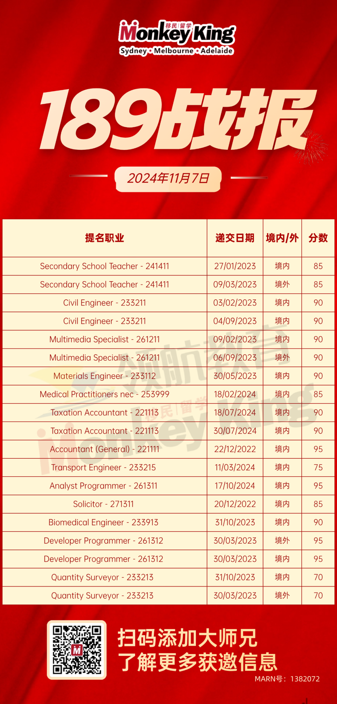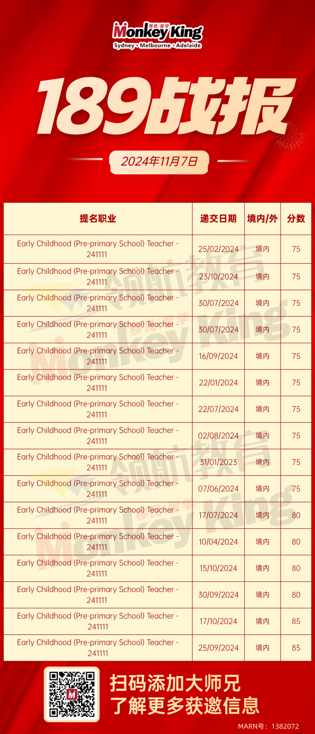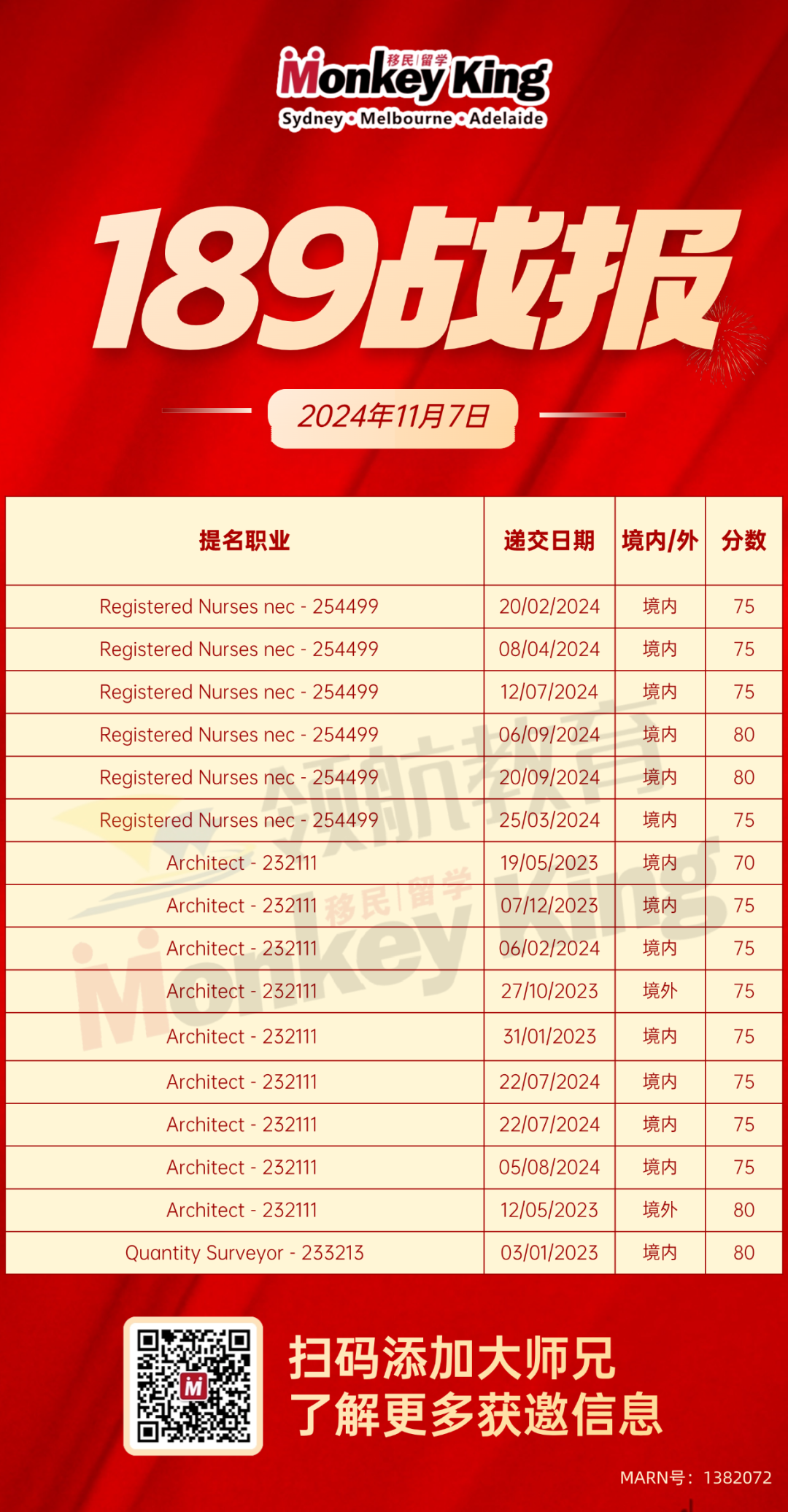 幼教和护理这类移民三宝都是以75分获邀自是不必说。