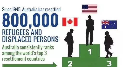 从1945年开始,澳大利亚共接受了超过80万的难民,除了美国加拿大之外,稳坐第三把交椅。