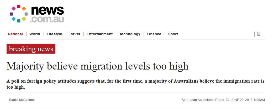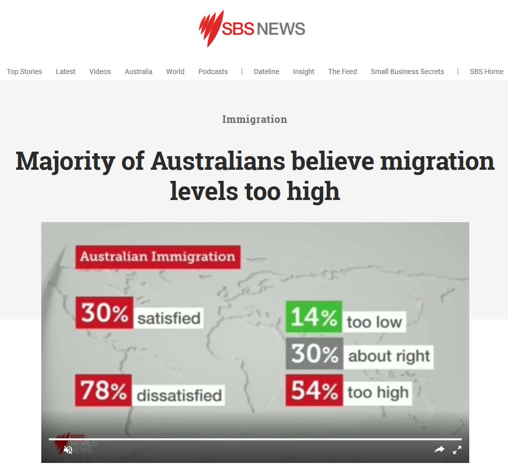 根据研究所为1200人的调查显示,大多数澳大利亚人认为目前的移民配额过多。