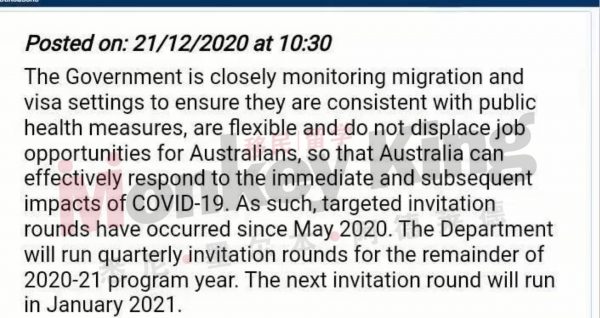 具体的调整为2020-21财年剩余的几个月,EOI的发放邀请将改为按照季度来邀请,也就是3个月一次,而下一次的邀请将会在1月份发起。
