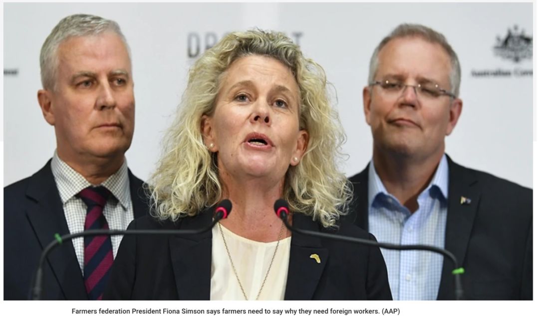 经历最初对联邦政府就劳动力短缺回应的抨击之后,国家农业联邦(NFF)催促农场登记劳动力短缺。在本月初,NFF主席Fiona Simson声明,国家农收信息服务的调查是对一个严重问题的肤浅回应。她表示,“我们的强烈意愿是看见澳大利亚的劳动力可以填补澳洲农场工作。然而,农场的工作大多是劳动密集型,并非全年都会有稳定的工作。因此,这不适合许多需要长期稳定工作的人。”