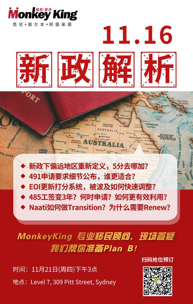 Monkey King移民留学提供免费的签证咨询和移民规划,我们致力于帮助更多有方向有需求并渴望留在的澳洲的华人,帮助他们实现移民的目标,更多资讯可以扫码关注我们的的微信公众号,留学移民咨询一手掌握: