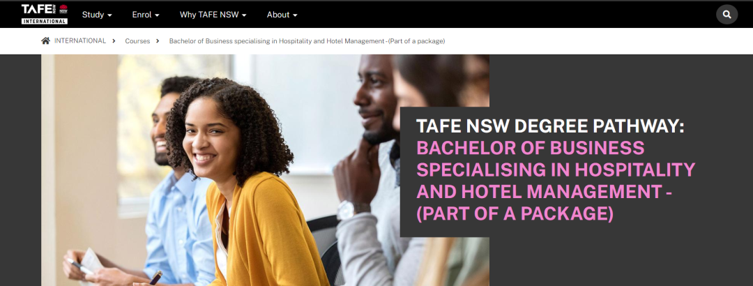 新州TAFE推出酒 店管理相关本科衔接课程: