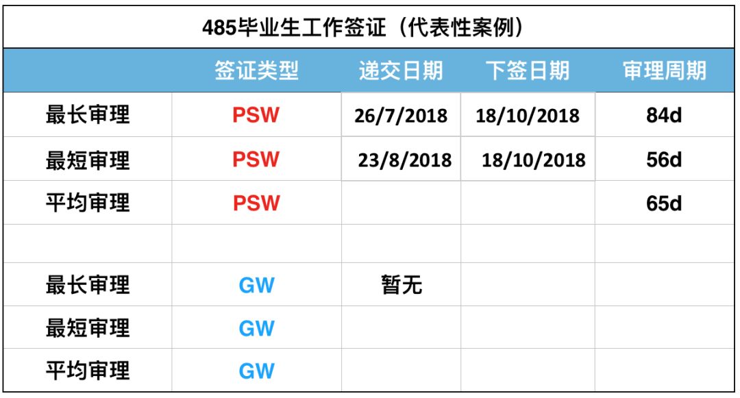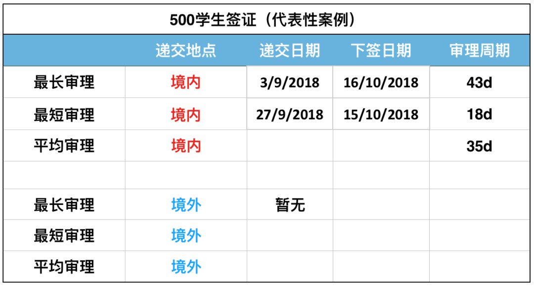 对于500学生签证,485毕业生工作签证及600旅游签证,表格中为大家选出具有代表性的常规案例来统计当前审理进度。如若有部分申请人尚未在表中列出的最长审理时间拿到签证,也无需惊慌,在众多申请案例中也属正常。