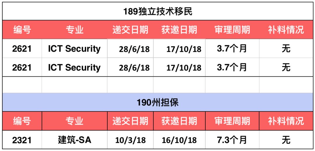 2018-19新财年10月,189-EOI 再次放出大量邀请。非热门专业邀请分数维持在70分,部分热门专业分数回归至70分。由于邀请人数数据量较大,在此仅给大家参考各职业189最新邀请进度及相应邀请分数。