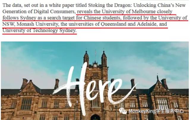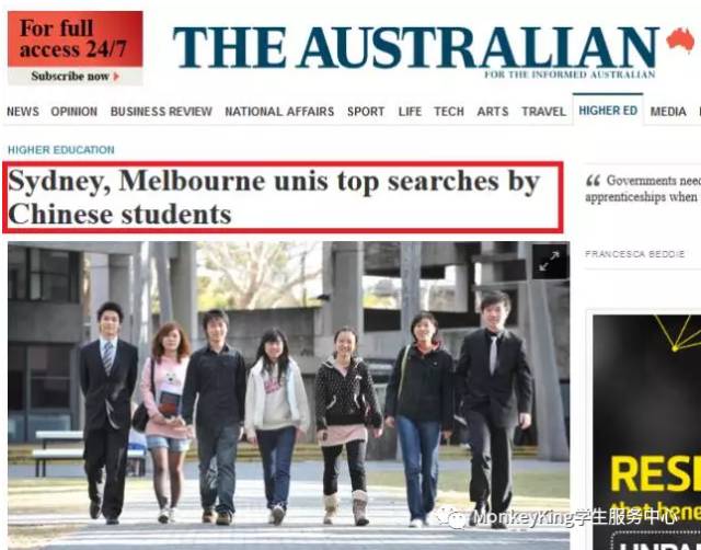 中国学生搜索最多的澳洲高校依次是:
