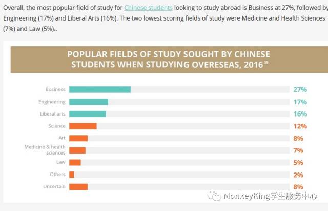 最受中国留学生欢迎的都是商科,占到27%;