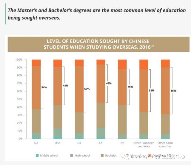 最常见的就是master学位,去澳洲的中国留学生中,有54%的就是去读master,去英国的有59%;去加拿大的有48%;