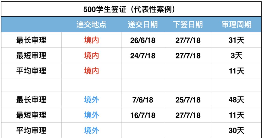 对于500学生签证,485毕业生工作签证及600旅游签证,表格中为大家选出具有代表性的常规案例来统计当前审理进度。如若有部分申请人尚未在表中列出的最长审理时间拿到签证,也无需惊慌,在众多申请案例中也属正常。