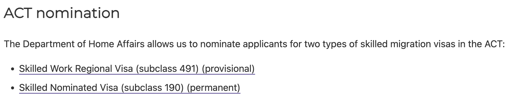 确保您选择合适的签证、满足内政部的基本签证要求以及ACT提名的要求。