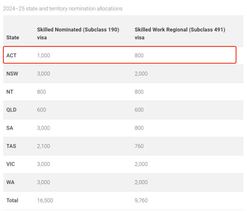 澳大利亚首都领地 (ACT) 政府可以通过澳大利亚移民计划的州担提名,灵活解决ACT技能短缺和填补劳动力市场。澳大利亚政府在每个财年为 ACT 分配固定数量的提名名额。