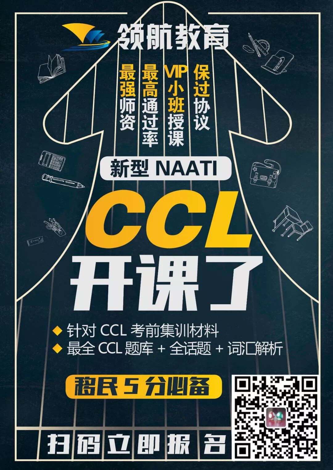 值得注意的一点是:CCL考试通过,但并不能成为口译员和从业人员。但换一个思路来说的话,也势必会比纯外部考试容易(因为CCL只可以为移民加5分,毕业并没有翻译证书拿!)
